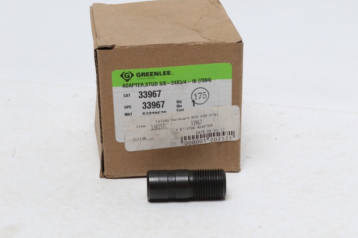 The efficient Greenlee 33967 ADAPTER, STUD 3/8-24X3/4-16 (7804) is in 3/8 inch diameter and a replacement adapter for hydraulic drivers.