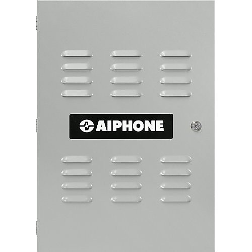 The durable Aiphone AC-C AC Series Lockable Vented Steel Enclosure Includes Conduit Knockouts designed to hold a master controller board, an AC-PS125 power supply, and up to four expansion boards. It is lockable, vented, and includes nine conduit knockouts on the sides and the back of the enclosure.