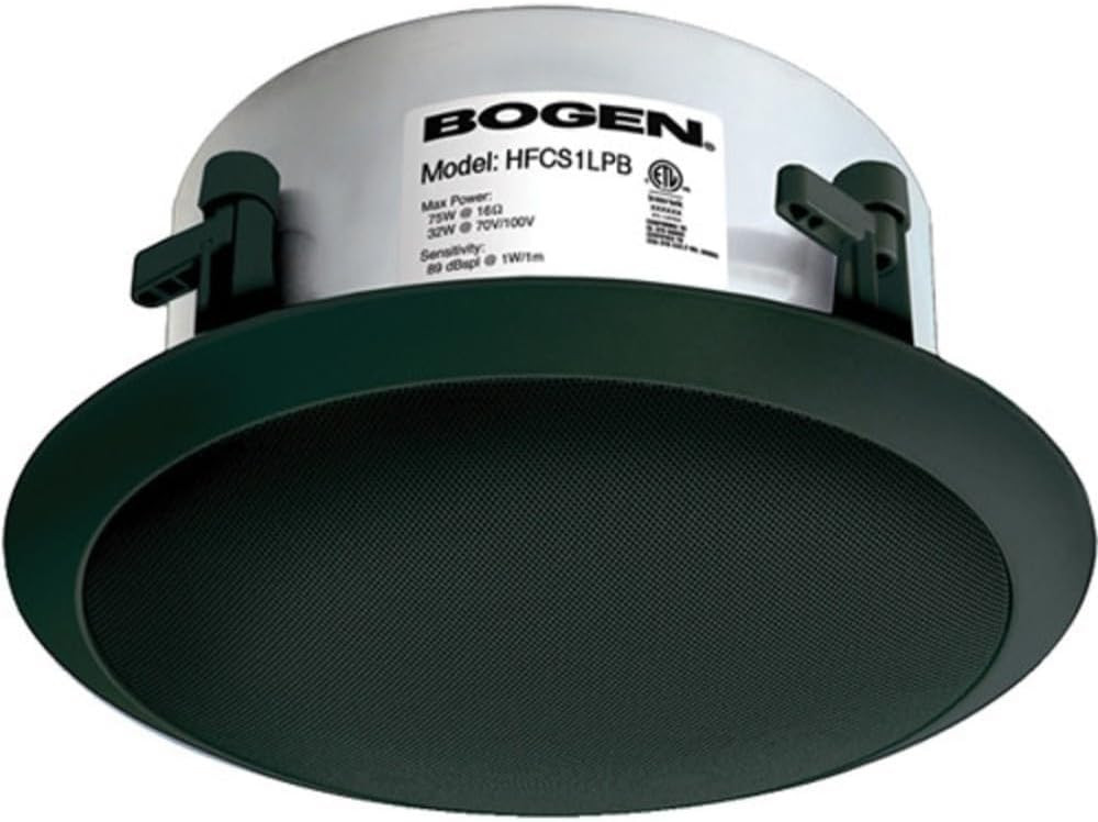 The high performance Bogen HFCS1LPB High Fidelity Low Profile Ceiling Speaker (Black) wis a offers wide-dispersion coaxial drivers for consistent, broad sound coverage. It features smooth off-axis response and a computer-matched venting system that delivers rich bass. The design includes a large back can for enhanced bass depth and supports high power handling for clear foreground audio. Users can easily select power taps with a front-mounted control, suitable for 70V and 100V systems.