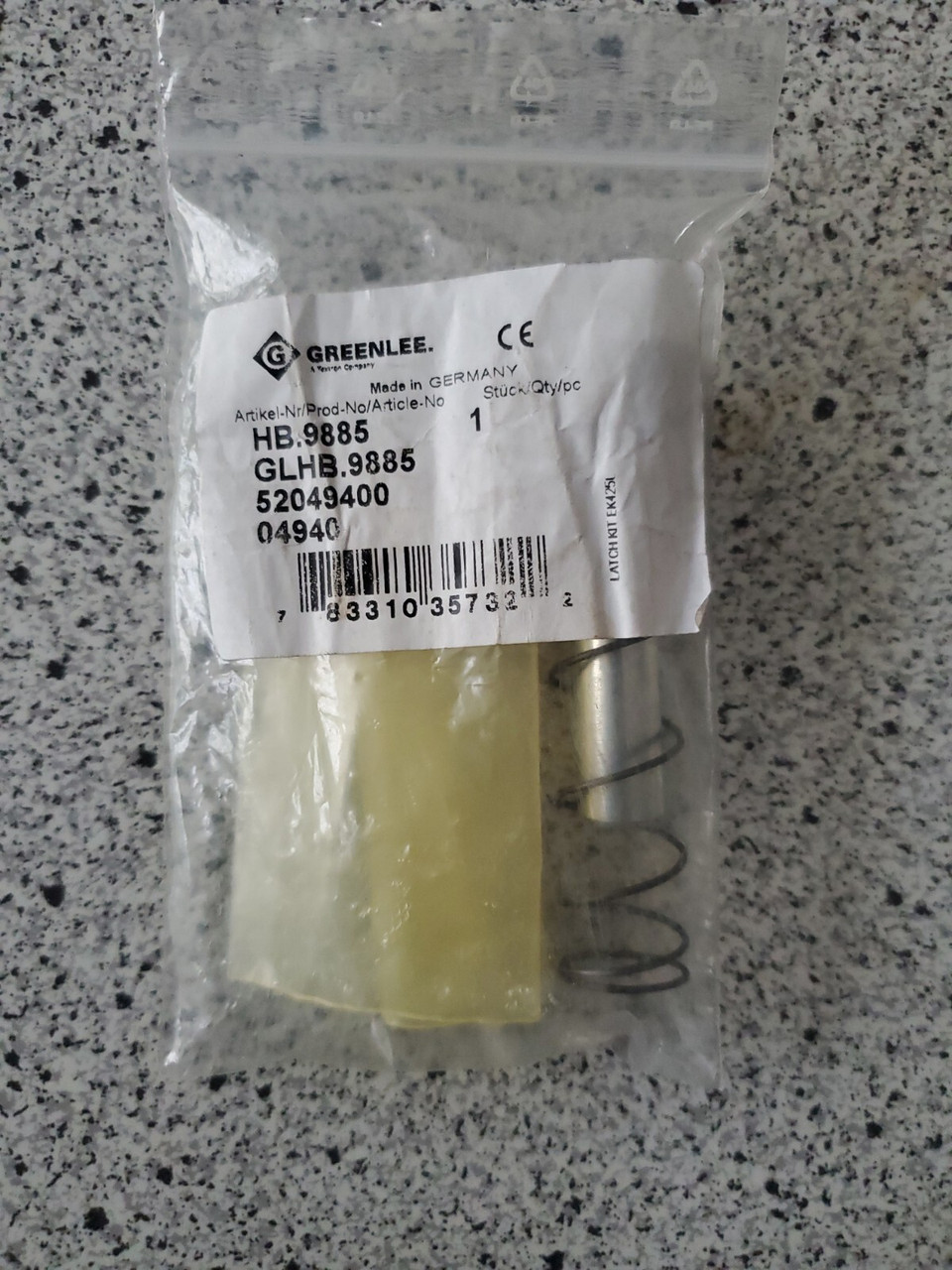 The strong Greenlee LATCH KIT HB.9885 for Gator Powered Crimping Tool EK628L. it includes a Compression Spring, Locking Pin, and Pin.
